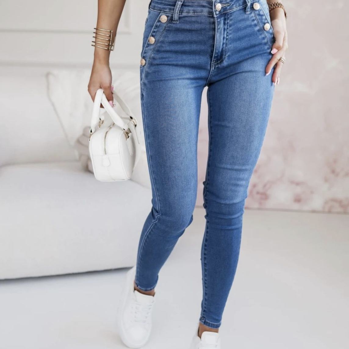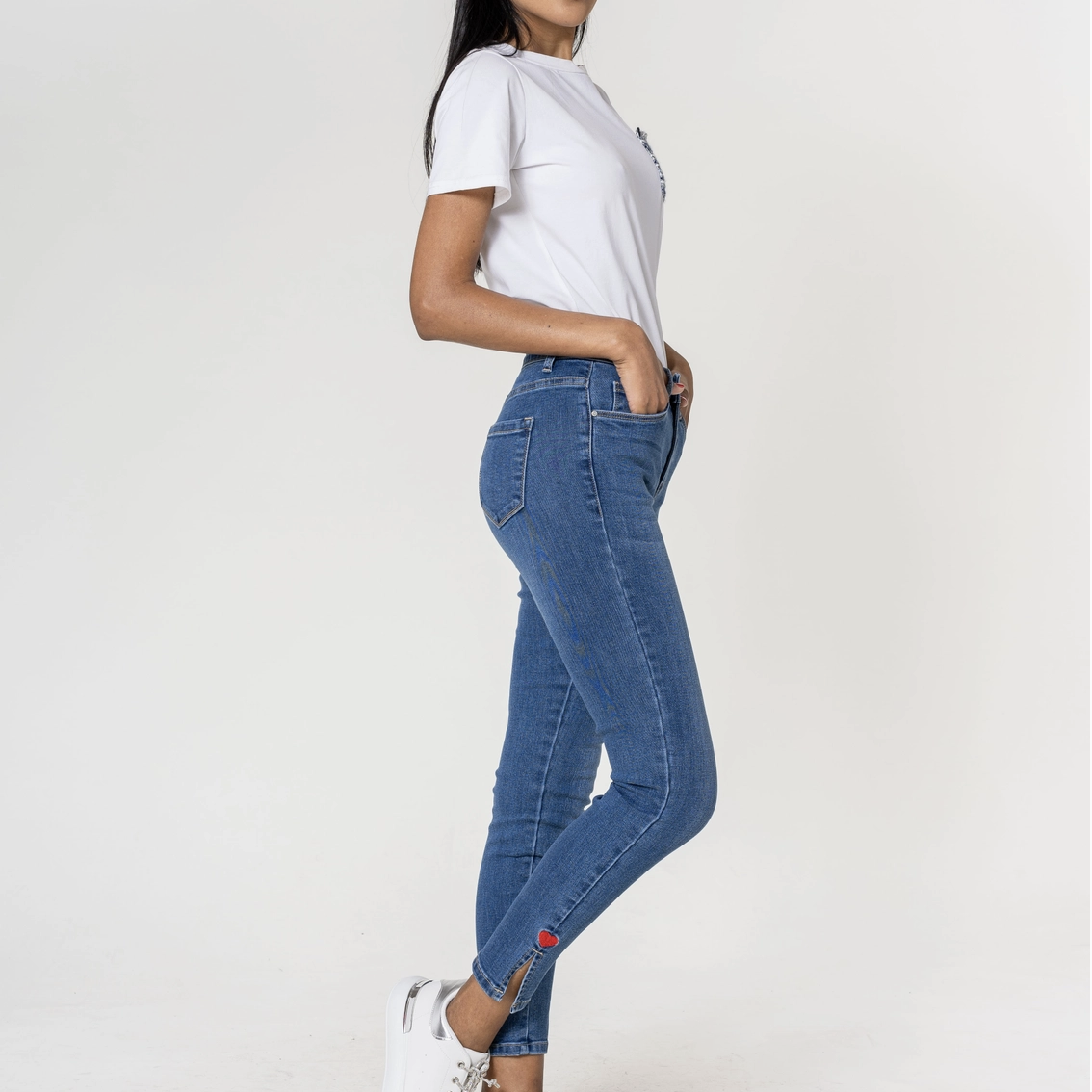 Jean taille haute 7/8 zip en bas de jambe slim stretch
