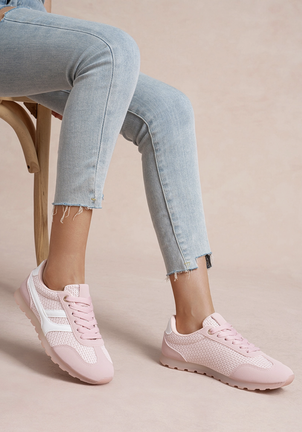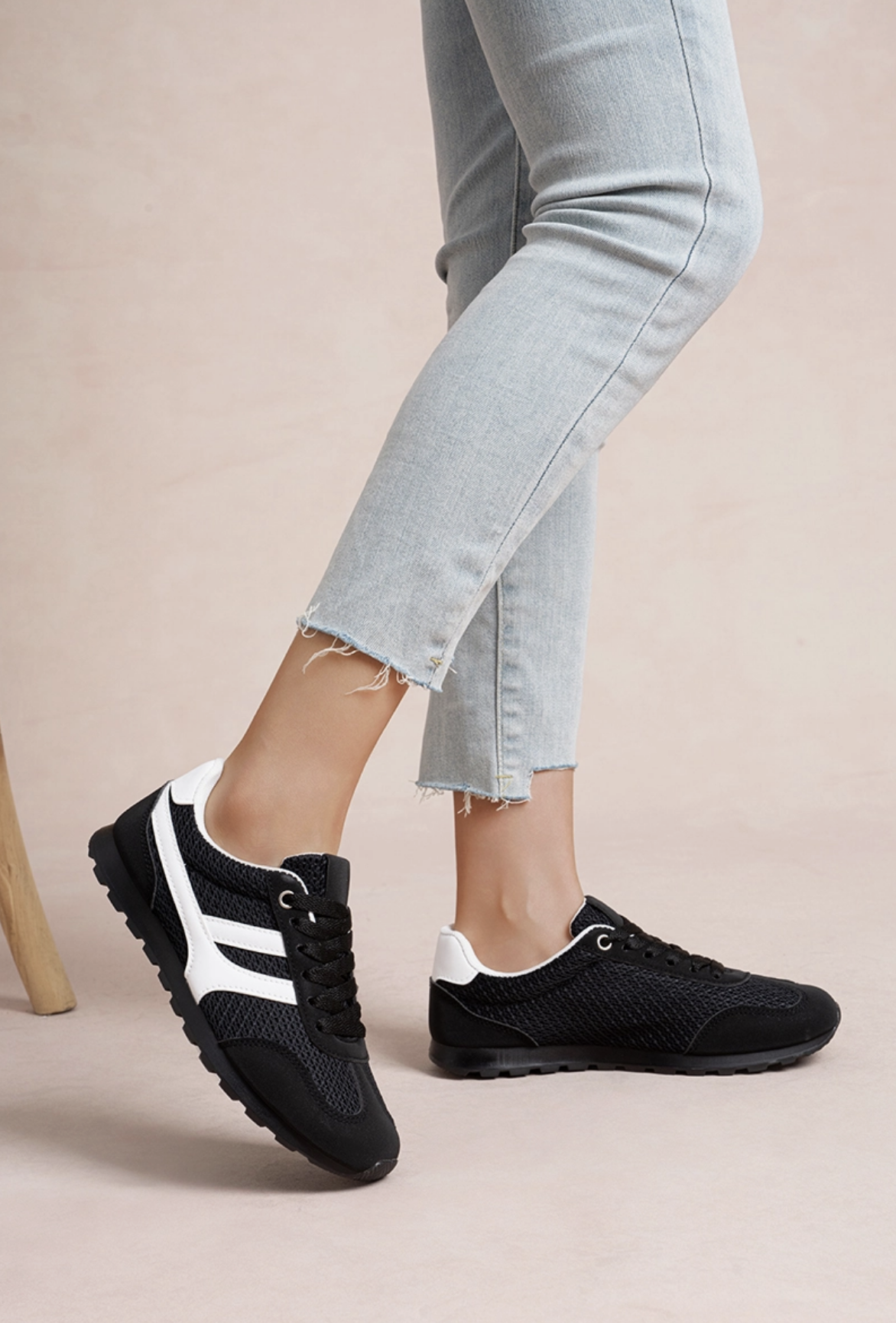 Adoptez la tendance rétro-running avec ces baskets légères et colorées. Inspirées des modèles sportifs des années 80, elles offrent un mélange parfait de confort et de style décontracté. La tige est conçue en mesh respirant pour une aération maximale, idéale par temps chaud, et est renforcée par des empiècements en suédine (PU). La semelle fine à crampons et le détail des deux bandes latérales contrastantes accentuent leur allure athlétique et vintage. Déclinées en plusieurs coloris vifs ou neutres (rose poudré, bleu ciel, marron, noir/blanc), elles sont parfaites pour une tenue casual et dynamique au quotidien. Caractéristiques : • Coloris : Plusieurs coloris • Style : Rétro-Running / Sport-Chic / Décontracté • Bout : Rond et renforcé • Tige : Basse, majoritairement en mesh respirant • Fermeture : Lacets plats • Détails : Bandes latérales contrastantes, semelle à picots/crampons, empiècements en suédine • Matière extérieure : Textile (Mesh) et Similicuir (PU effet suédine) • Doublure : Textile • Semelle intérieure : Confortable et amovible • Semelle extérieure : Caoutchouc léger avec crans antidérapants