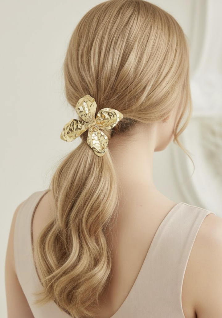Ajoutez une touche d’élégance à vos coiffures avec ce bijou de cheveux doré, alliant raffinement et praticité.