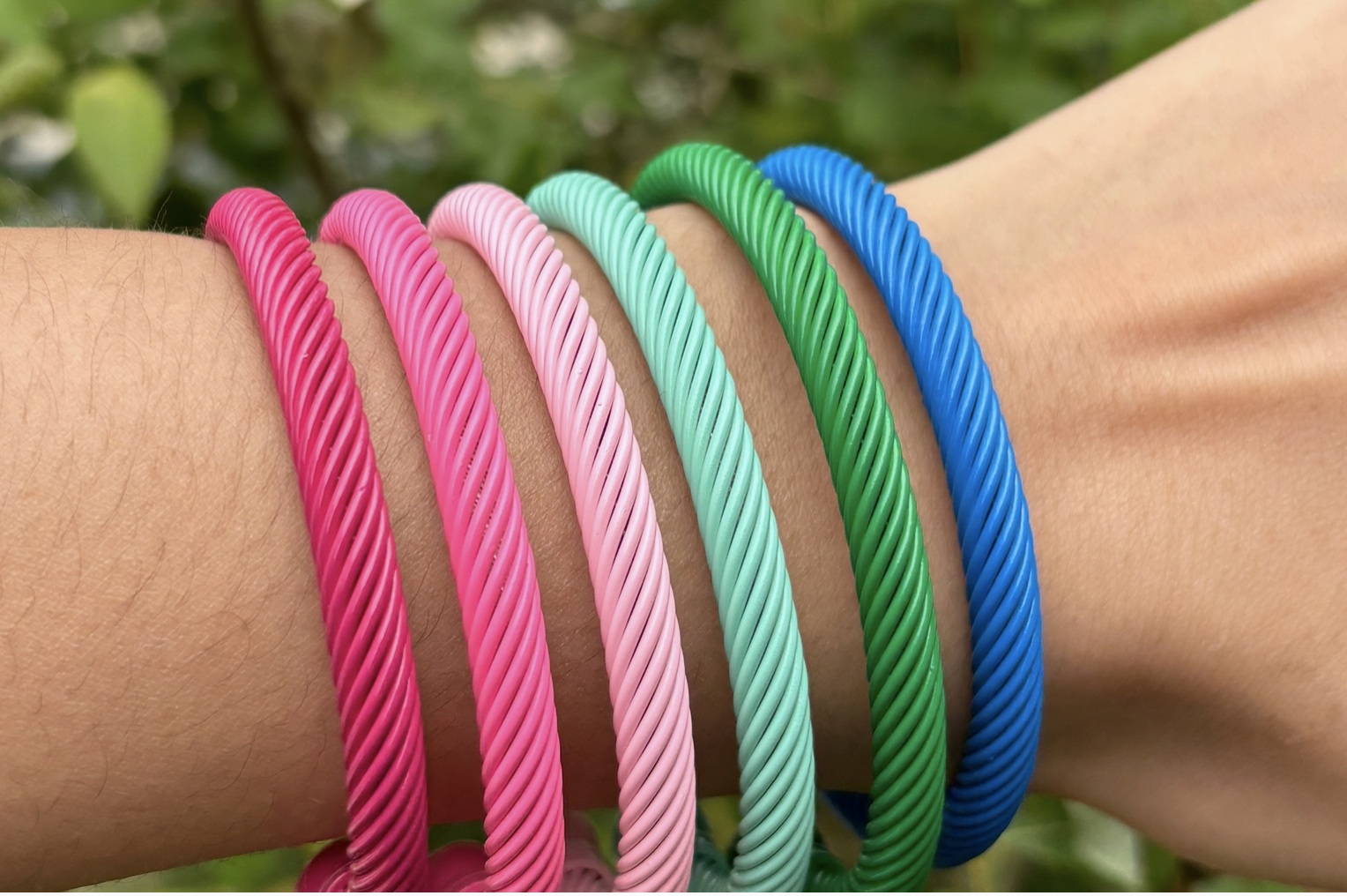 Bracelet jonc coloré. Résiste à l'eau et ne noircit pas.