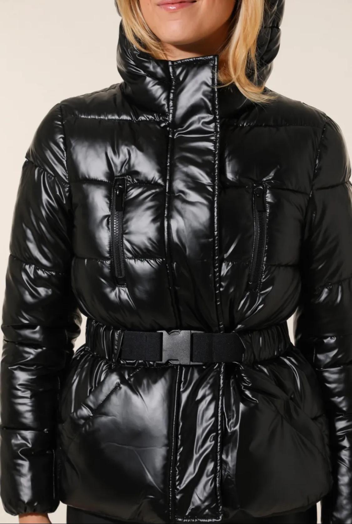 Elle comporte des poches latérales et un stoppeur élastique au niveau du col afin d'ajuster la capuche. Cette doudoune courte matelassée est dotée d'un tissu métallisé et une fermeture zippée.