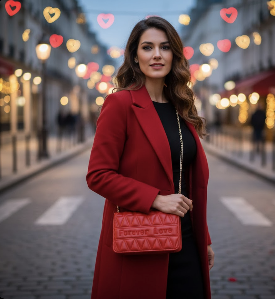 Un accessoire élégant et moderne, parfait pour celles qui recherchent une touche de romance et de sophistication. Fabriqué en simili cuir de haute qualité, ce sac présente un design épuré et structuré, idéal pour les journées en ville ou les soirées spéciales.