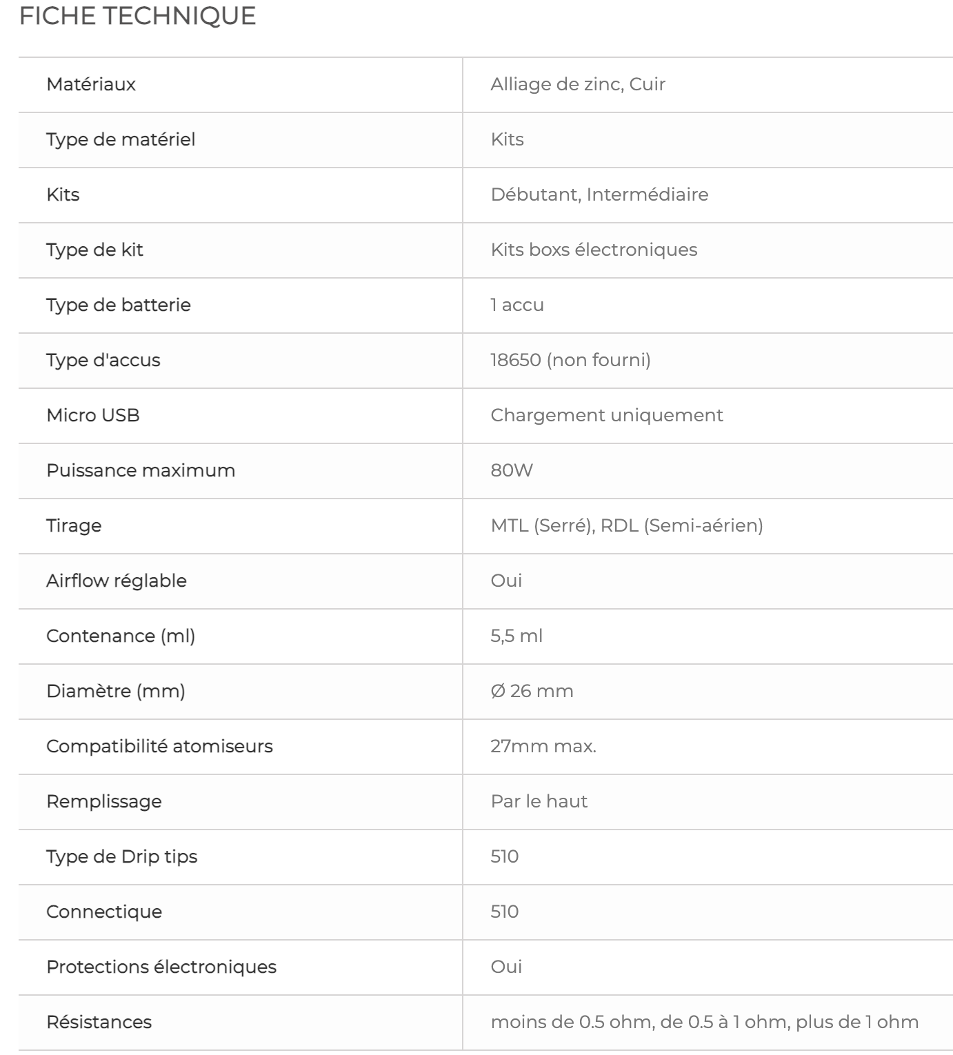 Le kit CoolFire Z80 fonctionne avec un accu 18650 (non fourni) et peut monter jusqu'à 80W de puissance.