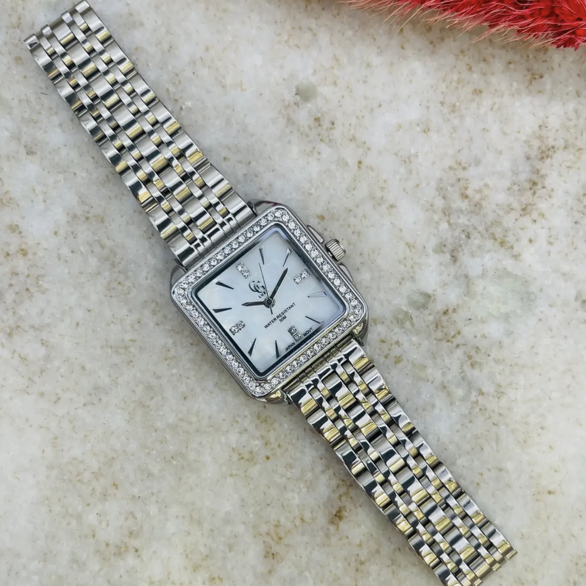 Son boîtier rond argent, délicatement serti, entoure un cadran blanc épuré , tandis que son bracelet à maillons argents larges lui confère une allure lumineuse et affirmée. Pensée pour sublimer tous les styles, Lucéa allie confort, présence et raffinement avec simplicité.