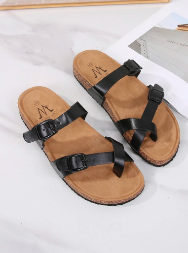 Mules à semelle effet liège avec double bride à mo