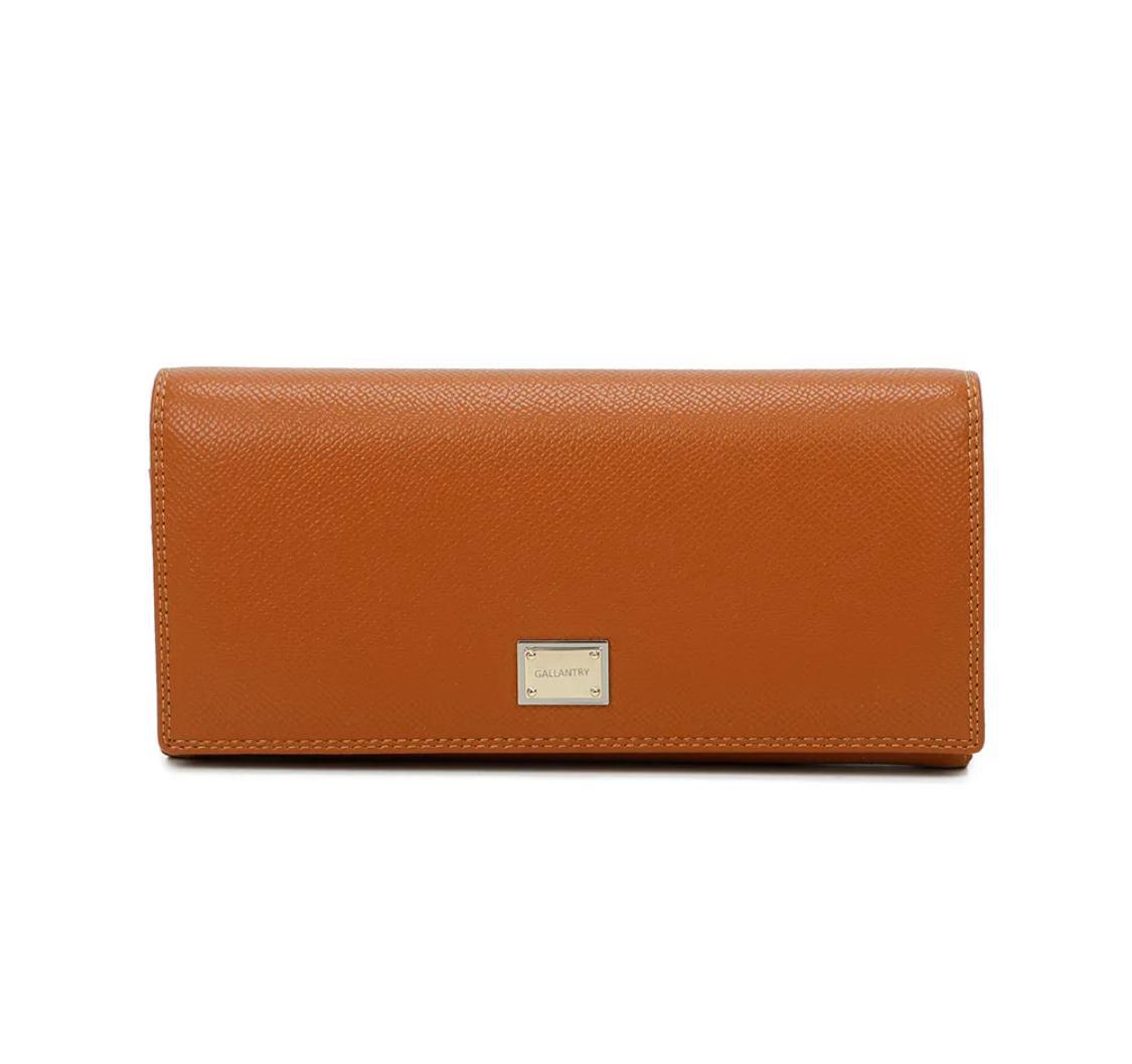 Porte-monnaie avec rabat pression en croûte de cuir de vachette métal. Deux compartiments dont un avec fermeture éclaire. Dimension: 11x9x2 cm