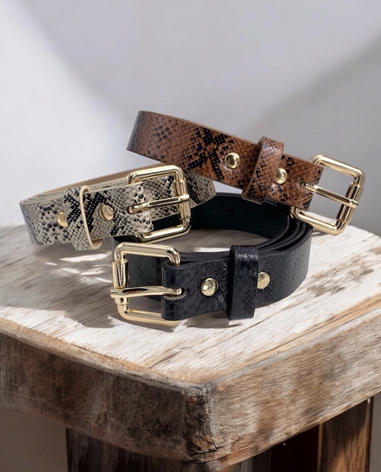 Cette ceinture en similicuir effet serpent est parfaite pour apporter une touche originale à vos tenues. Son motif subtil fait un accessoire à la fois chic et facile à associer