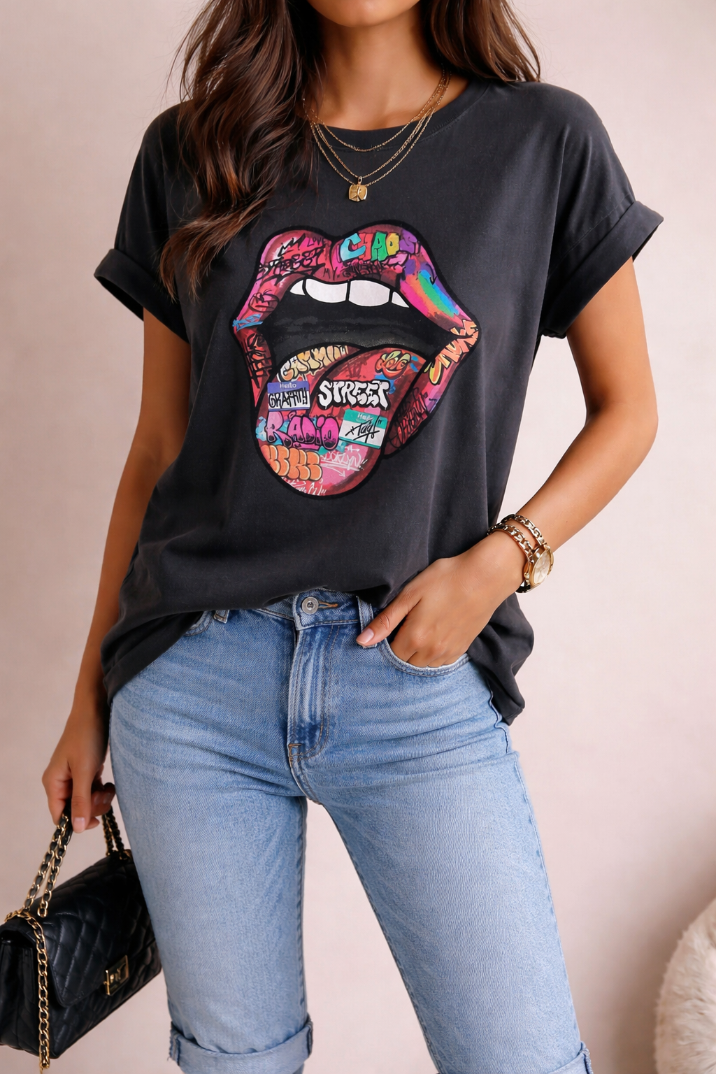 MARQUE. Attrait Paris T-shirt en coton imprimé coeur