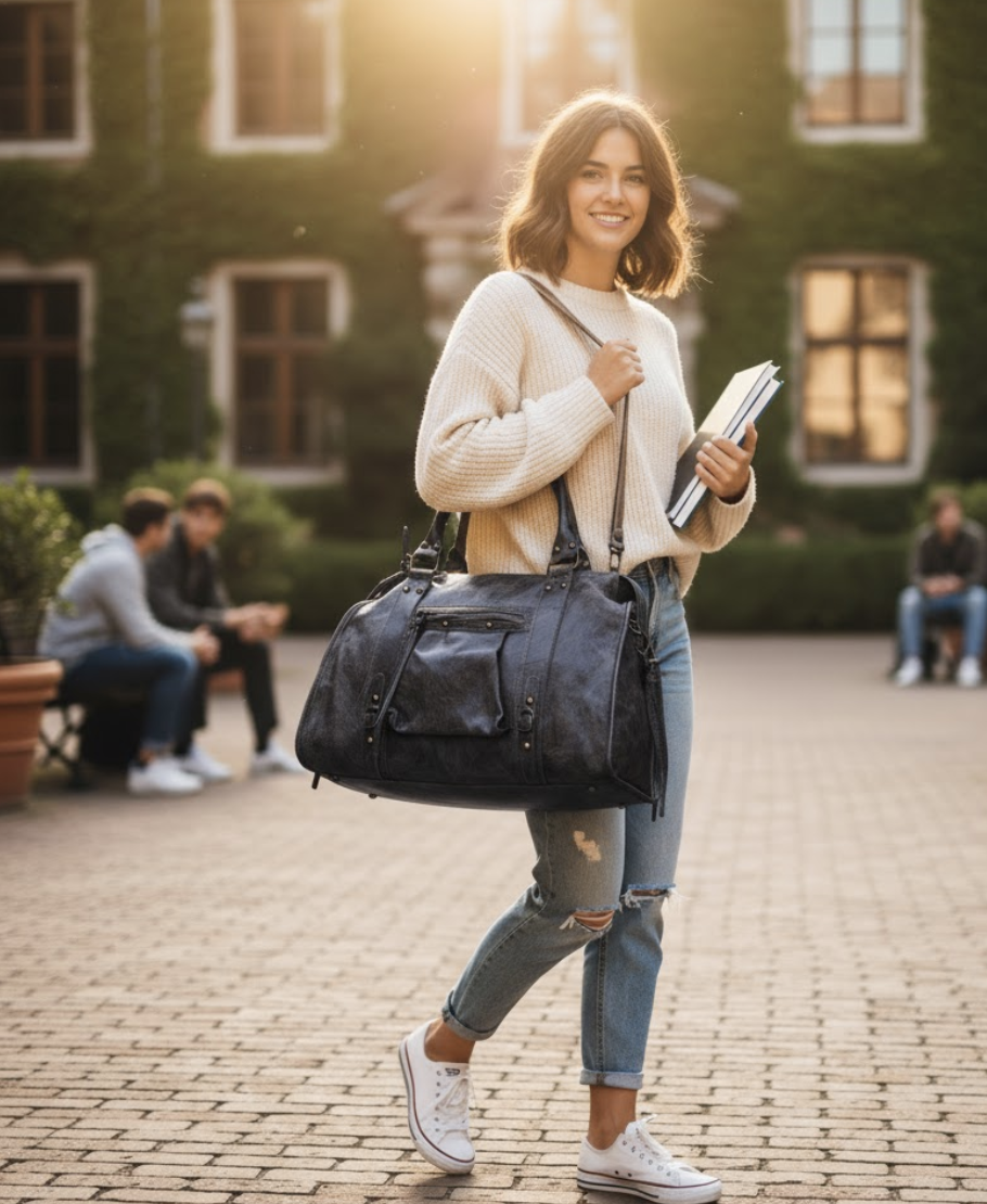 Fabriqué en cuir irisé et en Italie, il allie fonctionnalité et élégance, parfait pour ceux qui ont besoin d'un accessoire spacieux et stylé pour leur travail ou leurs études.