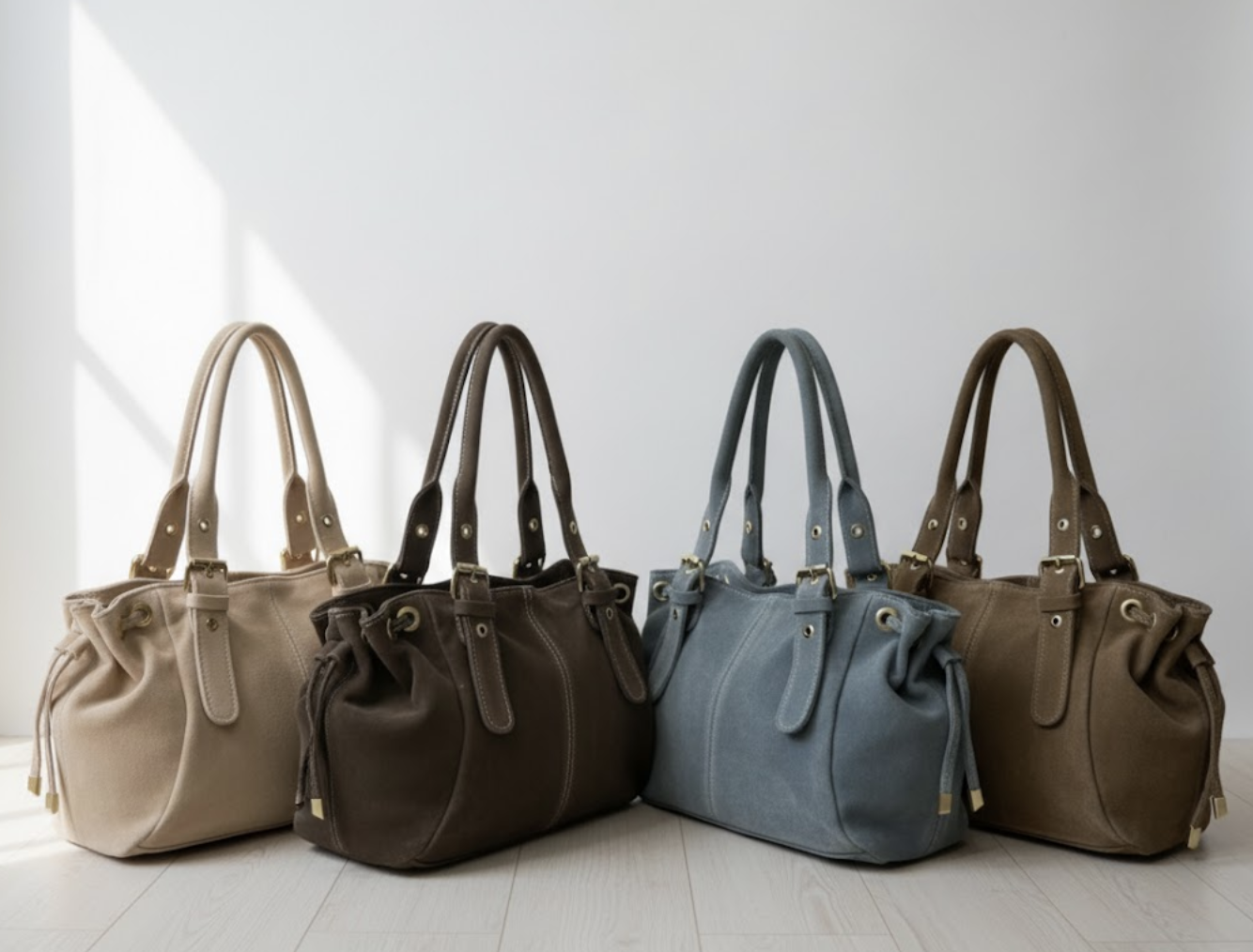 Un sac tendance en cuir suède italien, alliant minimalisme et élégance grâce à ses lacets ajustables pour un style unique.