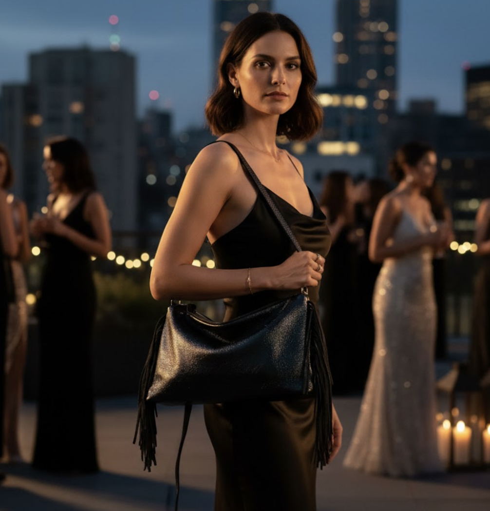 "Recto" : L'Art du Cuir Iridescent Italien. Ce sac exceptionnel révèle une lumière irisée et un mouvement gracieux grâce à ses franges raffinées. Conçu avec passion en Italie, il incarne l'alliance parfaite entre l'originalité contemporaine et un savoir-faire d'excellence, pour un style affirmé.
