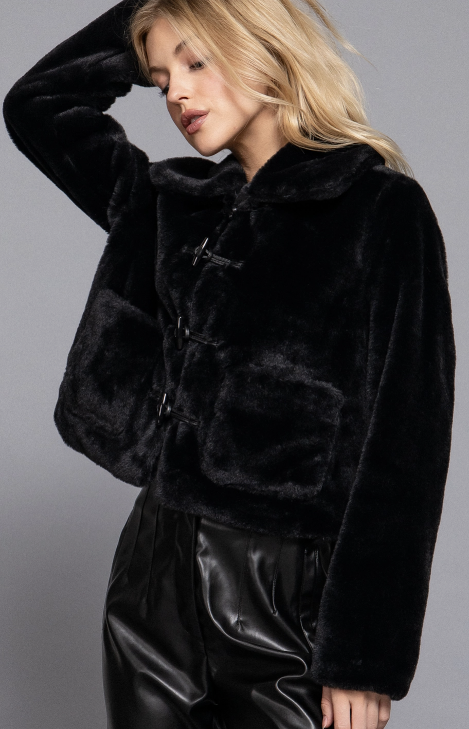 VESTE DUFFLE À COL À MANCHES LONGUES AVEC BOUTON-BOUCLE EN FOURRURE