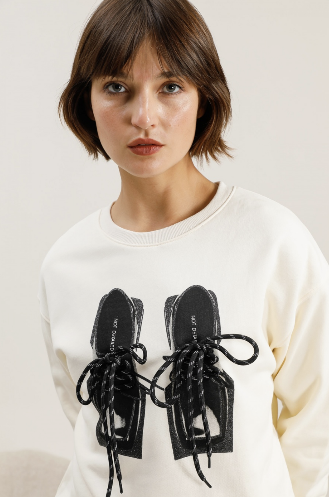 Sweat en coton doux à col rond, coupe droite confortable. Baskets à motifs brodées avec lacets réels intégrés pour un effet 3D surprenant et ludique. Une pièce originale et urbaine, parfaite pour dynamiser vos looks