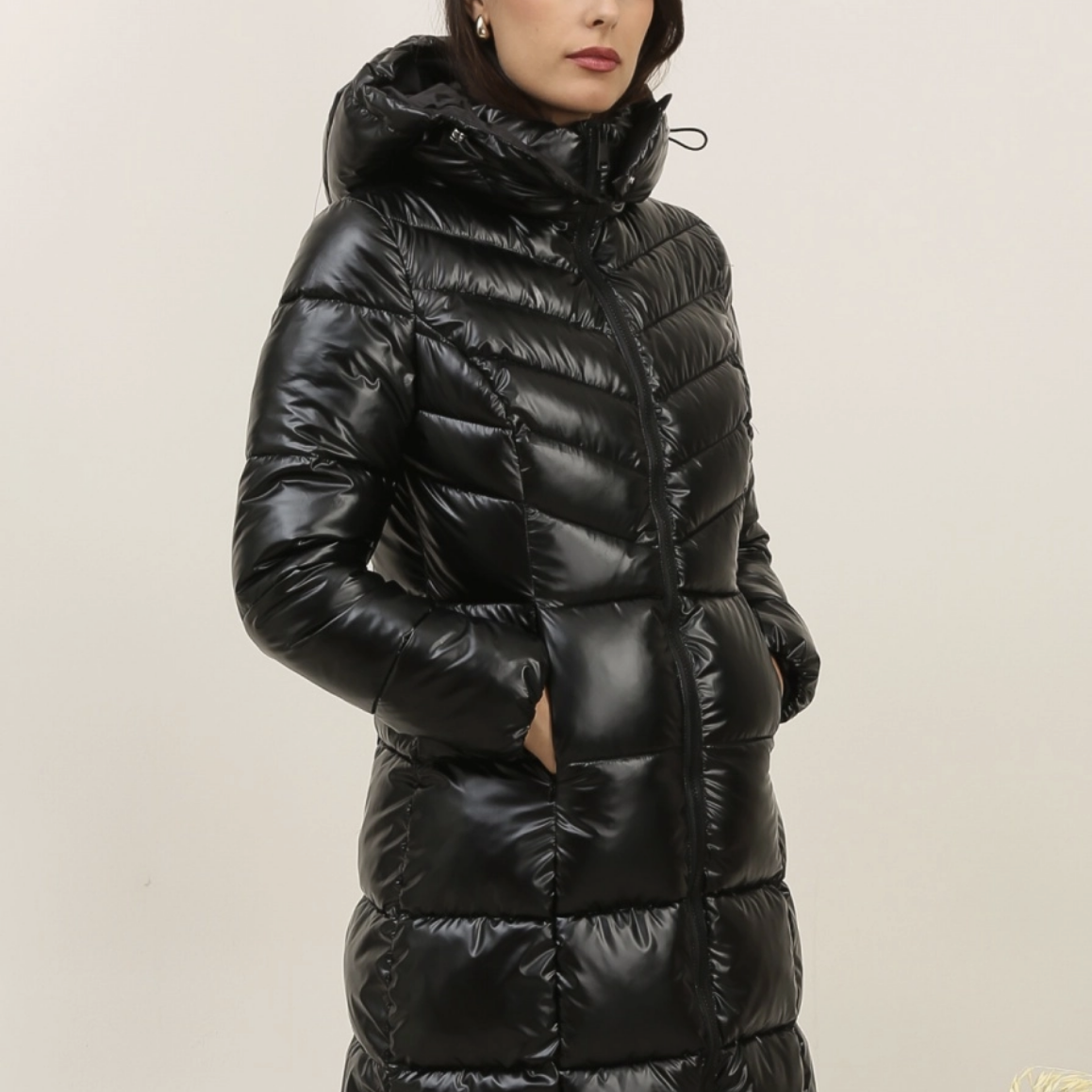 Cette doudoune contient une double fermeture, boutonnée et zippée.