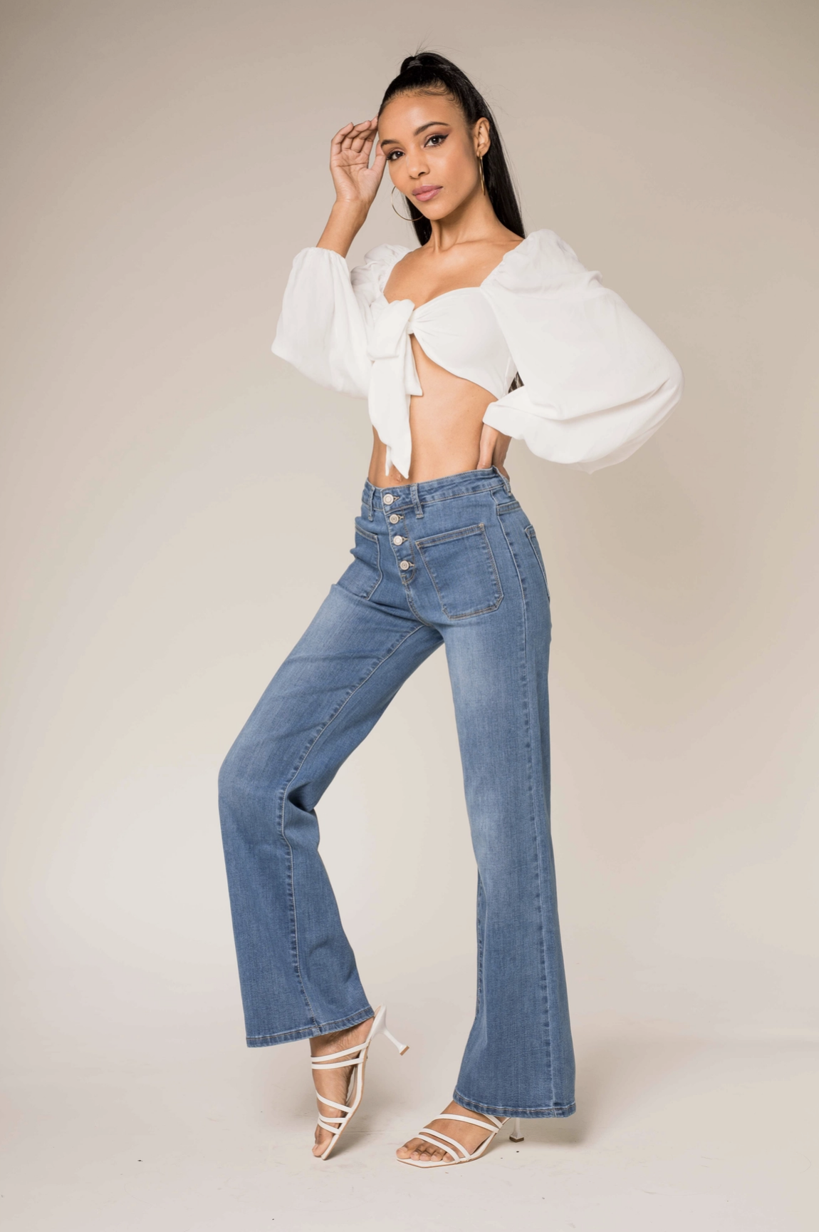 Jean taille haute stretch flare pour un look rétro, du XS/34 au XXL/44. L'indémodable de Nina Carter se décline maintenant dans une multitude de couleurs. La modèle mesure 1m69 et porte du S/36. Taille Française