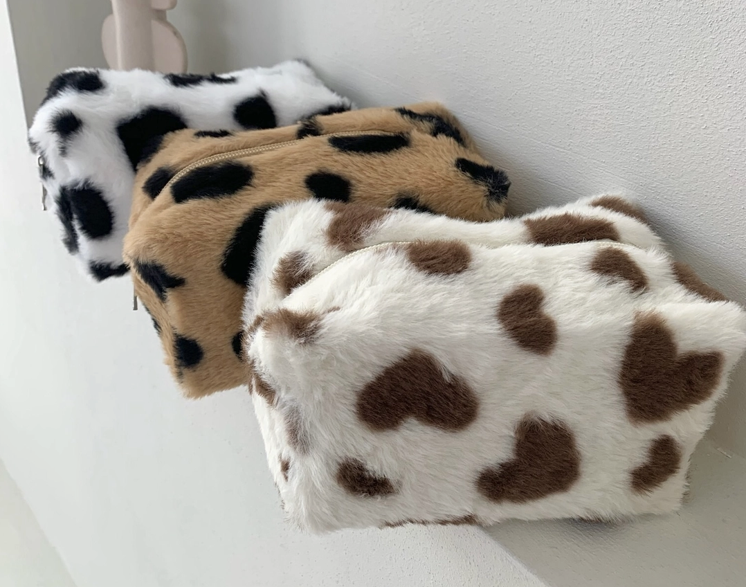 Trousse fausse fourrure motif cœur