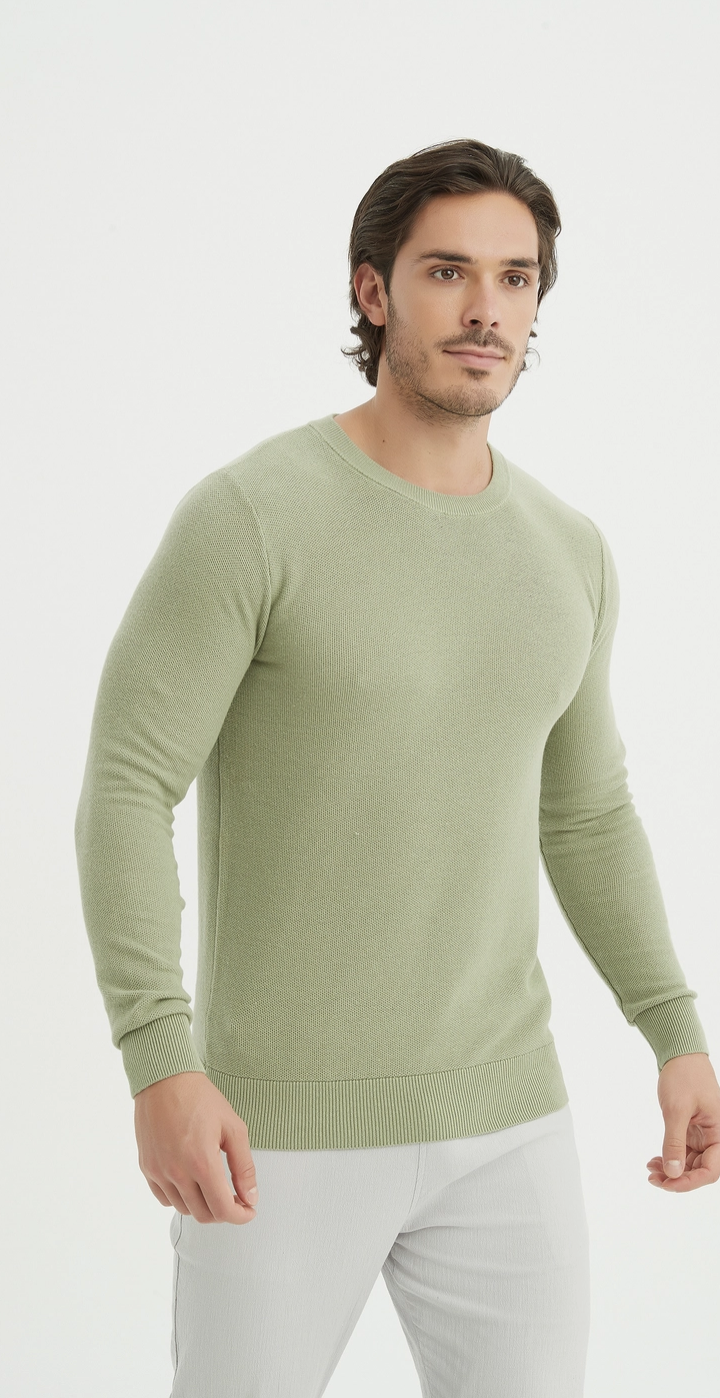 Pull col rond coton piqué