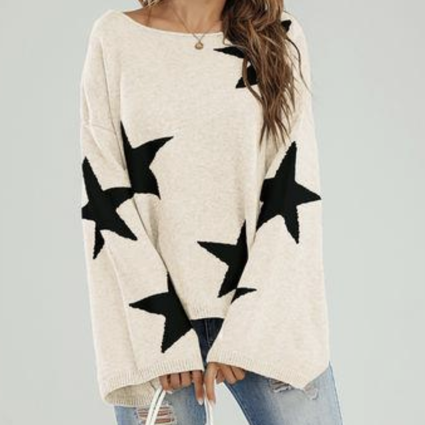 Pull en maille dans une coupe large en col V. Le haut en tricot est en taille unique. Composition : 79% Acrylique 21% Polyamide