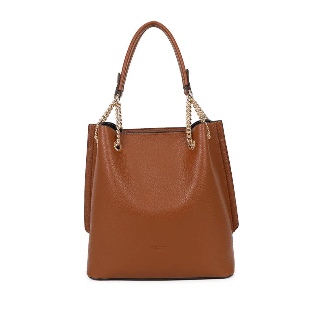 Avec sa ligne épurée et son cuir grainé souple, L’Essentielle s’impose comme le sac parfait du quotidien.