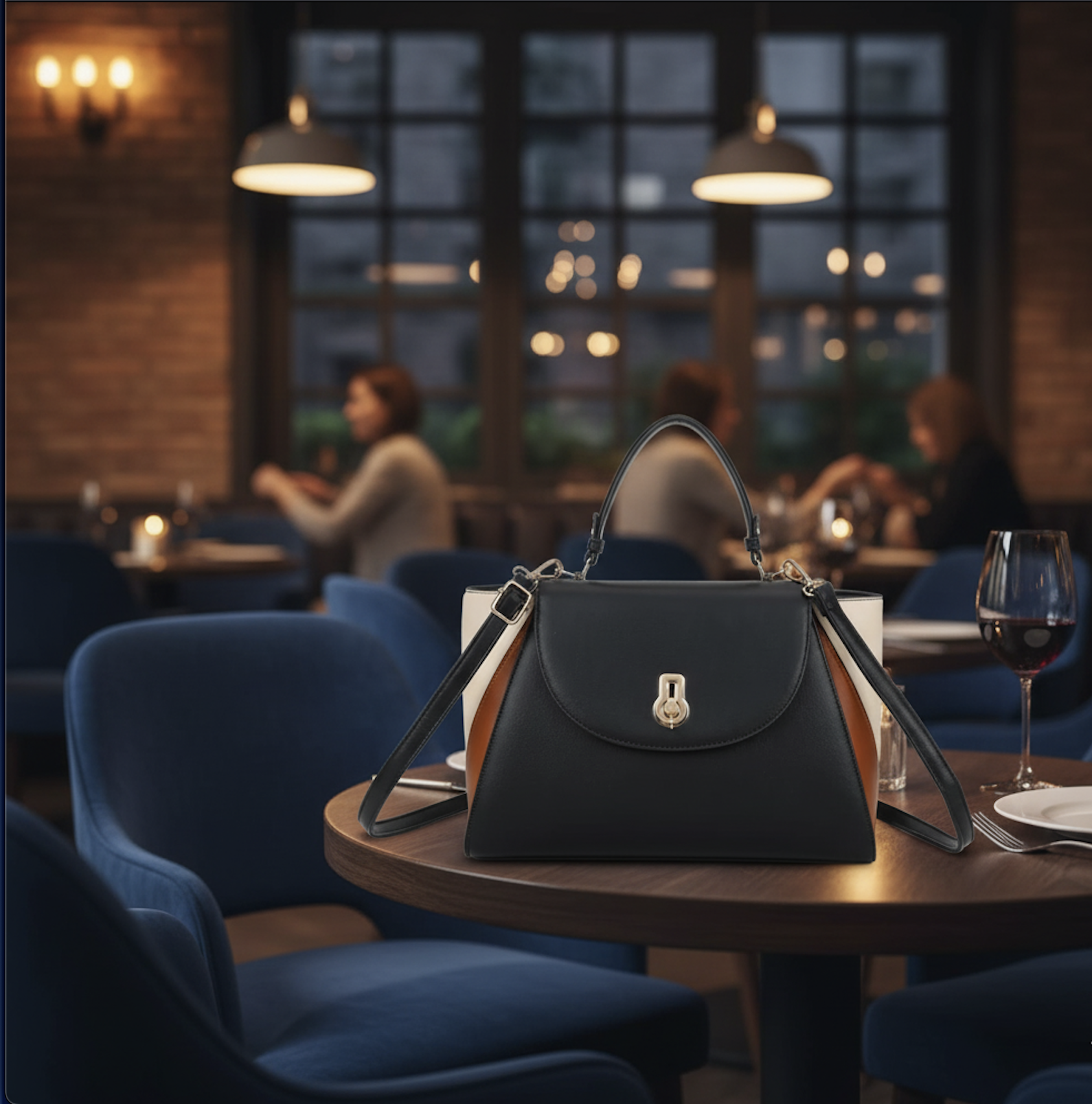 Posé sur la table d'un restaurant chic, il attire les regards admiratifs. Ce sac est plus qu'un accessoire, c'est une déclaration de goût.