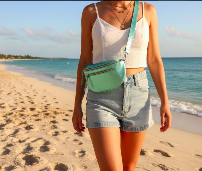 Ce sac banane en cuir de vachette irisé de 30 cm, fabriqué en Italie, présente deux fermetures. Il offre des poches à la fois à l'intérieur et à l'extérieur pour une organisation pratique de vos affaires. Un accessoire élégant et fonctionnel pour toutes les occasions.