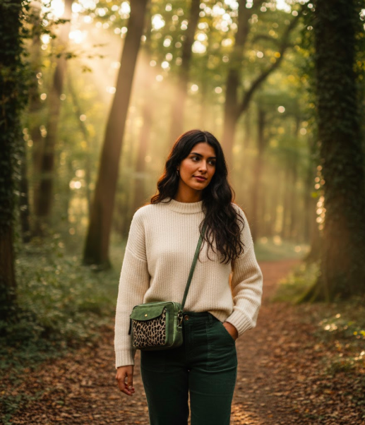 Le sac bandoulière Nuria en cuir irisé, fabriqué en Italie, est agrémenté d'une poche imprimée léopard sur le devant. Ce détail ajoute une touche audacieuse et tendance à l'élégance et à la qualité artisanale italienne de cet accessoire.