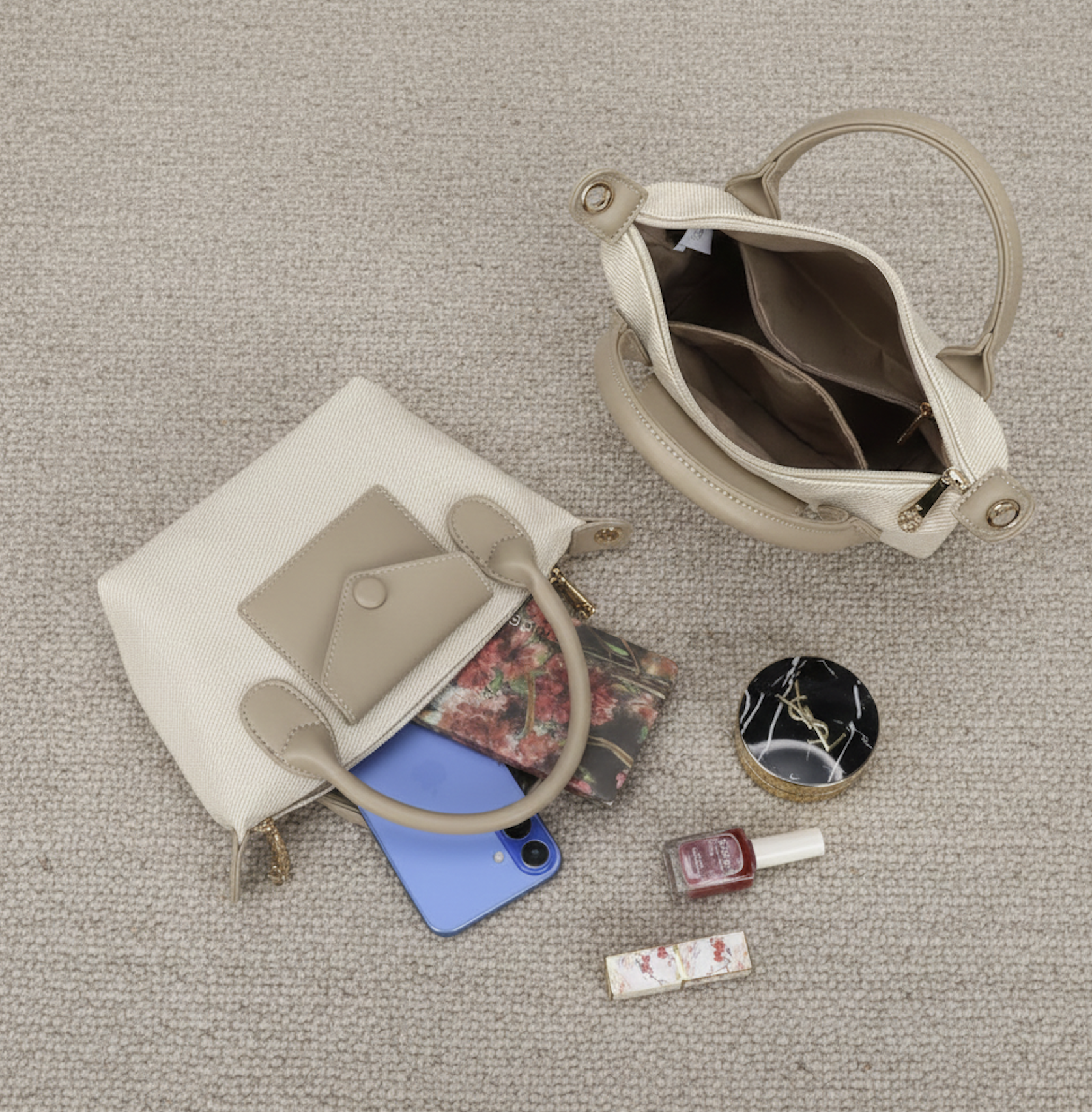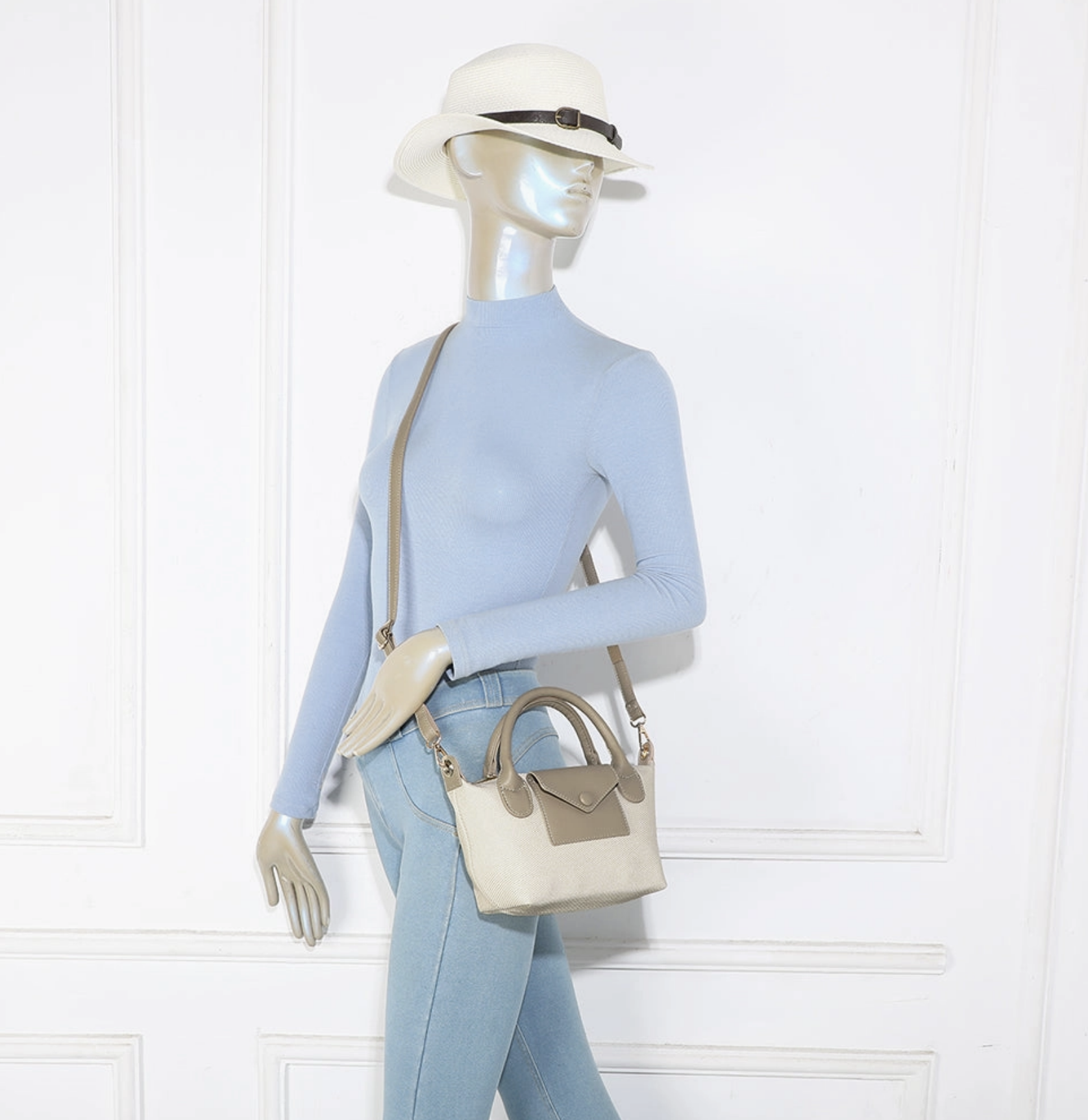 Compact, chic et facile à porter, Capri est le mini sac qui sera le compagnon idéal pour les journées légères et les sorties stylées. Son mélange de toile et de finitions en simili cuir lui apporte un style naturel et élégant, parfait pour toutes les saisons. Grâce à son format pratique, il accueille l'essentiel tout en restant léger et confortable. À porter à la main ou en bandoulière, il s'adapte à toutes vos envies, du quotidien aux sorties décontractées. Intérieur fonctionnel & bien organisé * Doublure textile douce * 1 compartiment principal * 1 poche intérieure zippée pour les objets précieux * 1 poche plaquée pour téléphone ou clés * Format idéal pour téléphone, portefeuille, maquillage et petits indispensables Les détails qui font la différence * Association toile & simili cuir pour un look naturel chic * Petite poche avant enveloppe avec bouton pression * Poignées arrondies confortables à la main * Bandoulière réglable et amovible * Finitions dorées élégantes * Léger et facile à porter toute la journée Dimensions & poids * Longueur : 18 cm * Hauteur : 15 cm * Profondeur : 9 cm * Poids : 0.23 kg