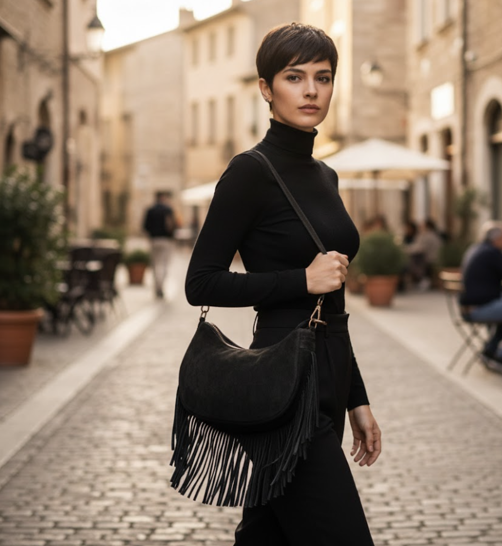 SAC CUIR SUEDE FRANGE DEMY Louisa Lee