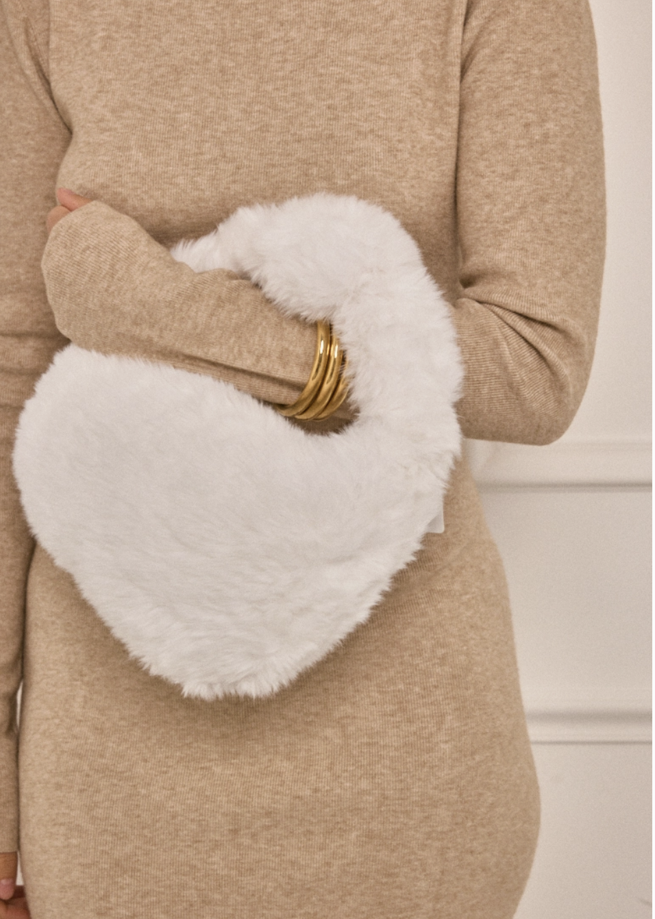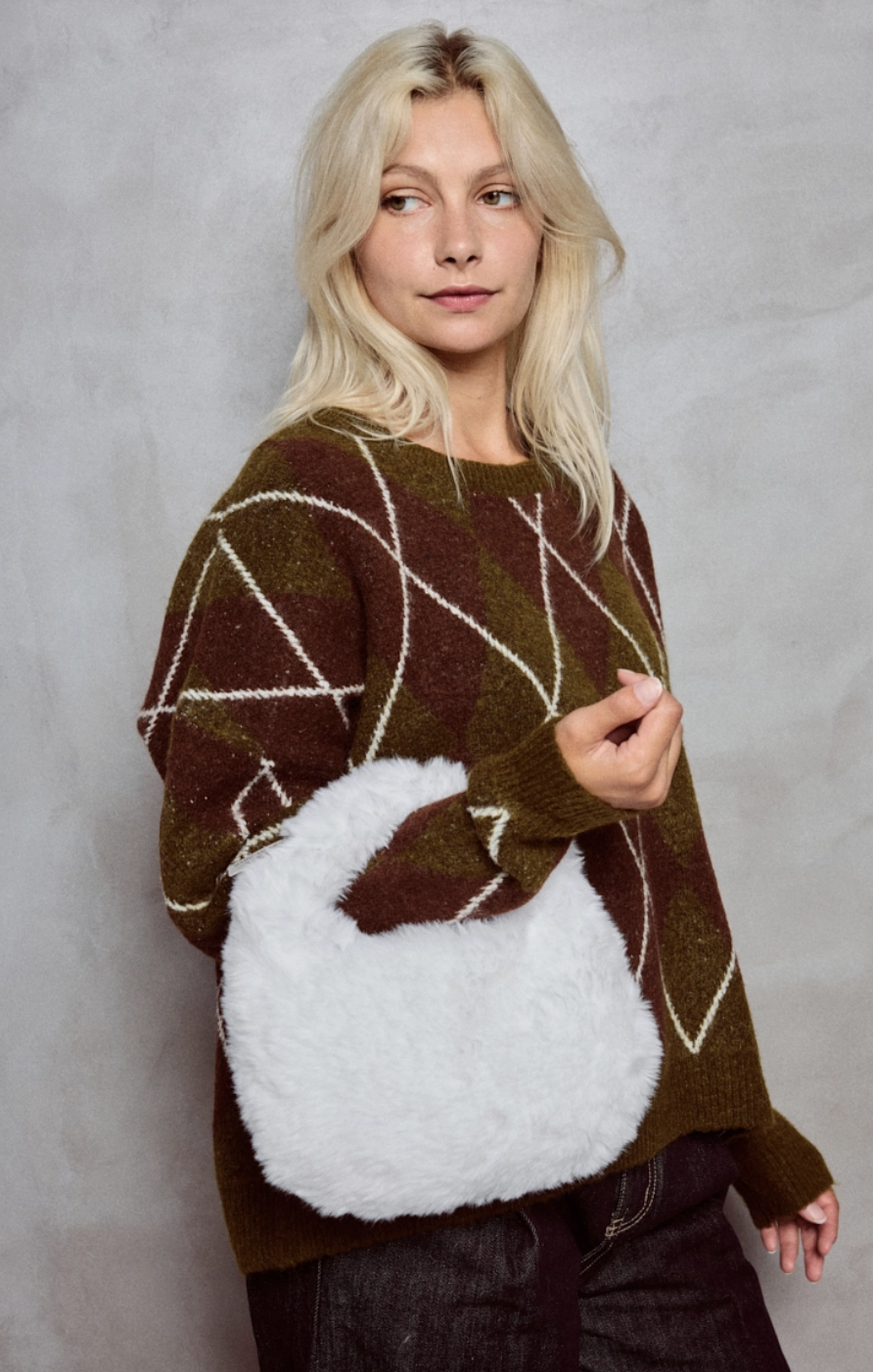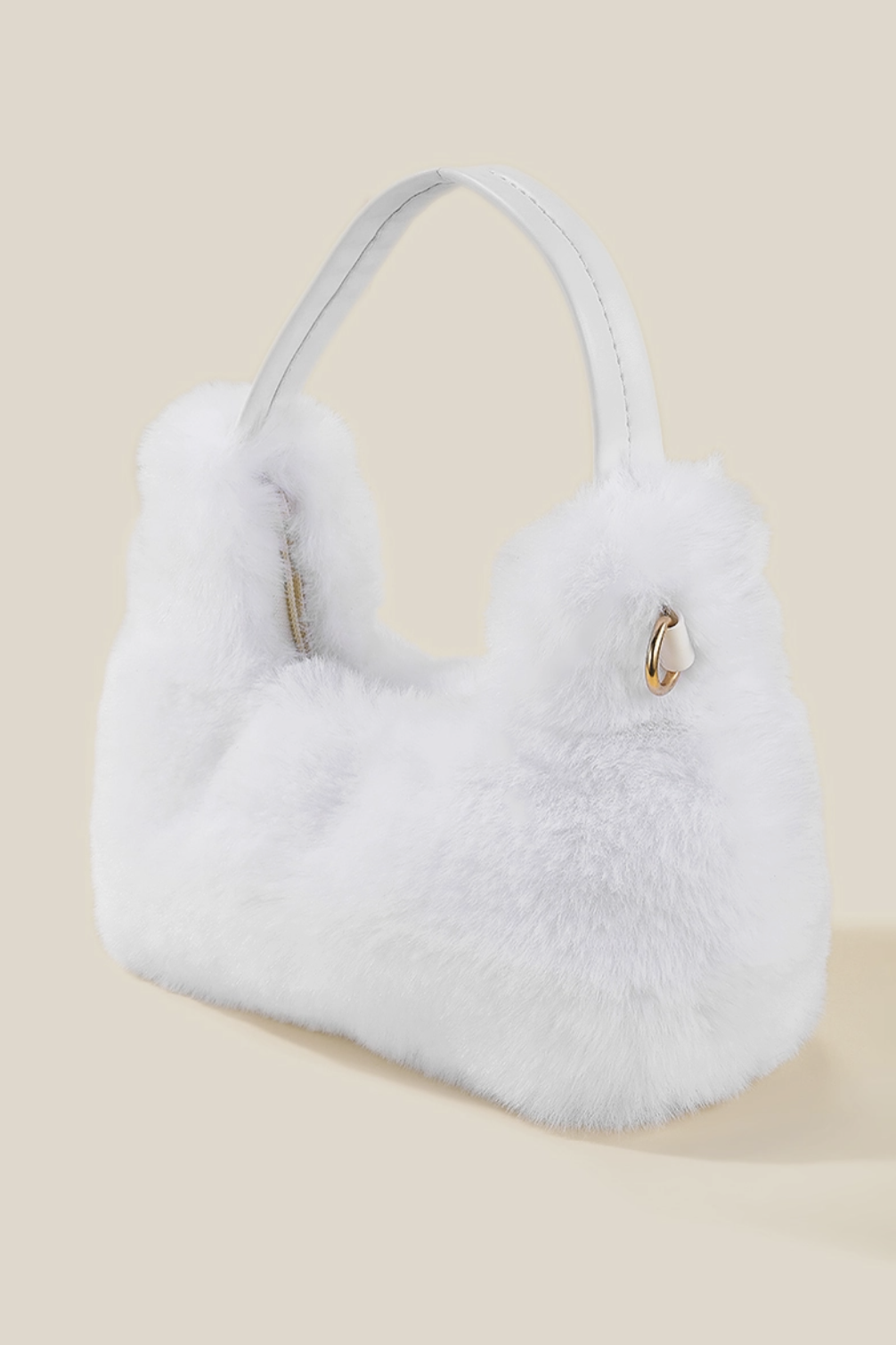 Complétez vos tenues avec ce sac à main en fausse fourrure.