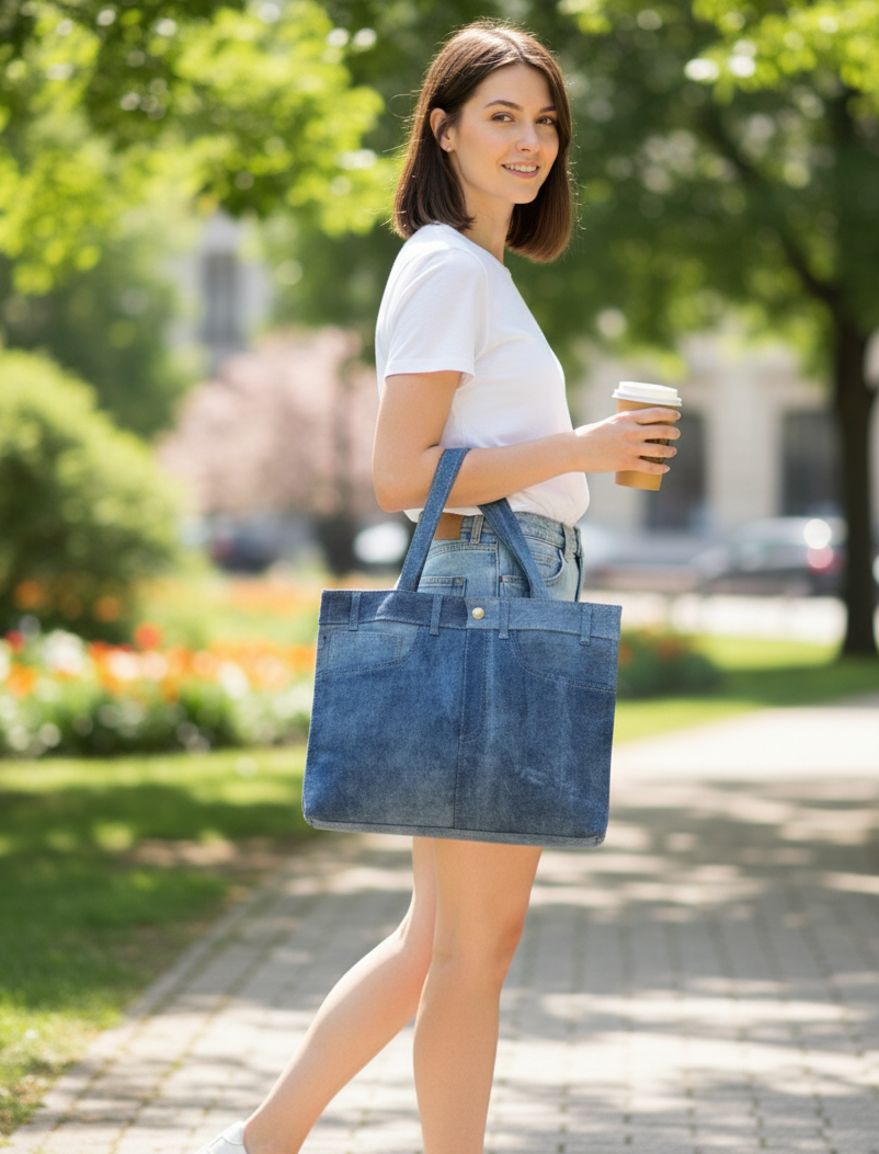Présentation du sac cabas en denim 25036 de la Maison de Milano. Ce sac cabas est un ajout chic à toute tenue, alliant sans effort praticité et style. La Maison de Milano, née à Londres, est réputée pour mêler élégance intemporelle et design tendance. Ce sac, comme tous nos produits, est fabriqué en cuir végan de qualité supérieure, offrant l'apparence et le toucher du cuir véritable tout en respectant notre engagement envers une mode sans cruauté. Ce sac cabas en denim rehaussera votre look.