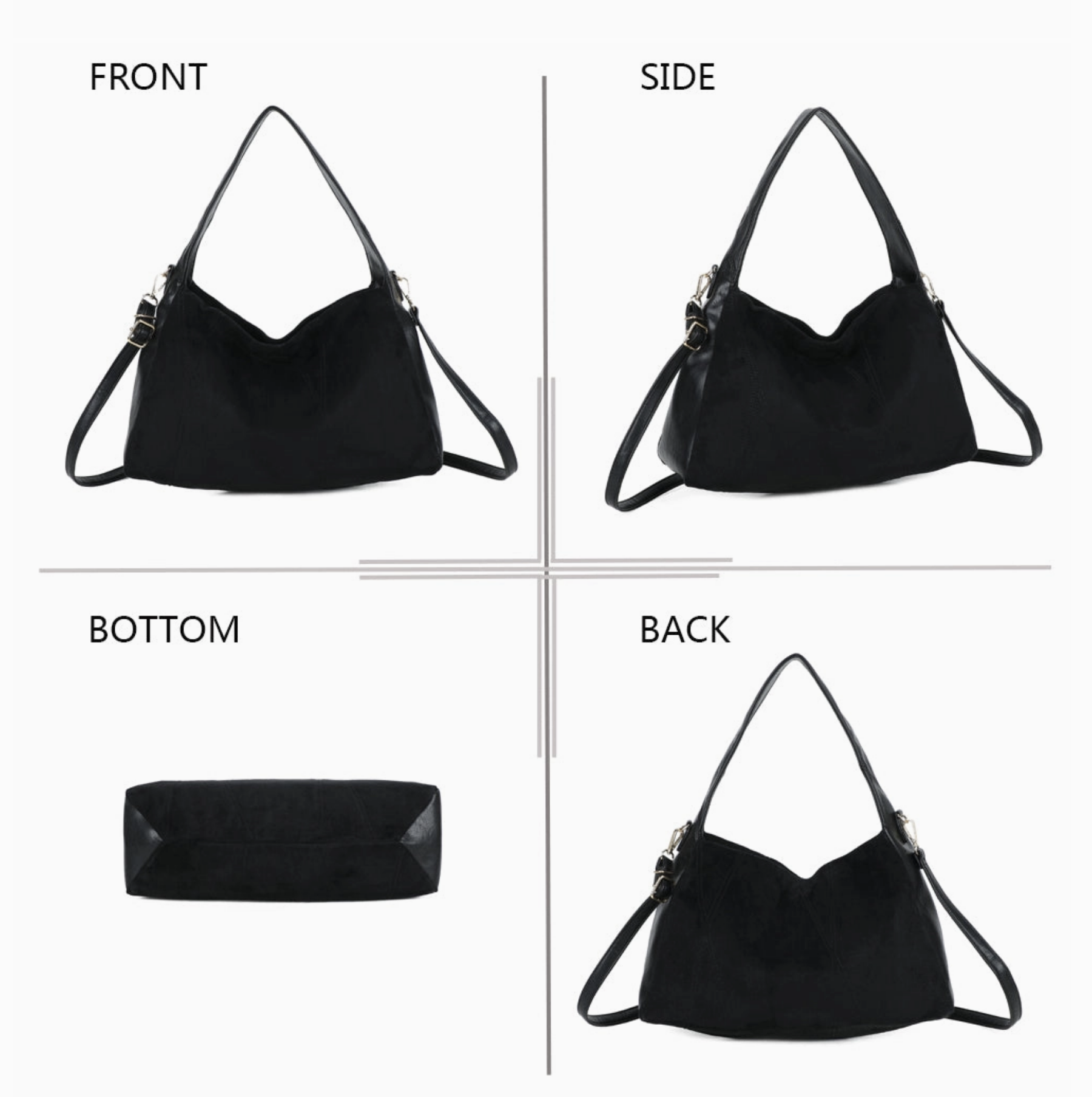 Le sac Milano est un sac à main au style souple et élégant, conçu en matière suédée. Sa forme fluide apporte une allure moderne et décontractée, parfaite pour un usage quotidien. Spacieux et léger, il accompagne aussi bien les journées actives que les sorties plus habillées. Intérieur fonctionnel & bien organisé * Grand compartiment principal spacieux * Doublure textile douce * Poche intérieure zippée pour les objets de valeur * Poches plaquées pour téléphone et petits accessoires * Capacité adaptée pour tablette, portefeuille, maquillage et essentiels du quotidien Les détails qui font la différence * Finition suédée douce au toucher pour un rendu premium * Coutures décoratives graphiques sur l'avant * Forme souple type hobo pour un porté naturel * Double portage : épaule et bandoulière réglable * Mousquetons métalliques robustes * Base stable pour une meilleure tenue du sac Dimensions & poids * Longueur : 38 cm * Hauteur : 24 cm * Profondeur : 13 cm * Poids : 0.49 kg