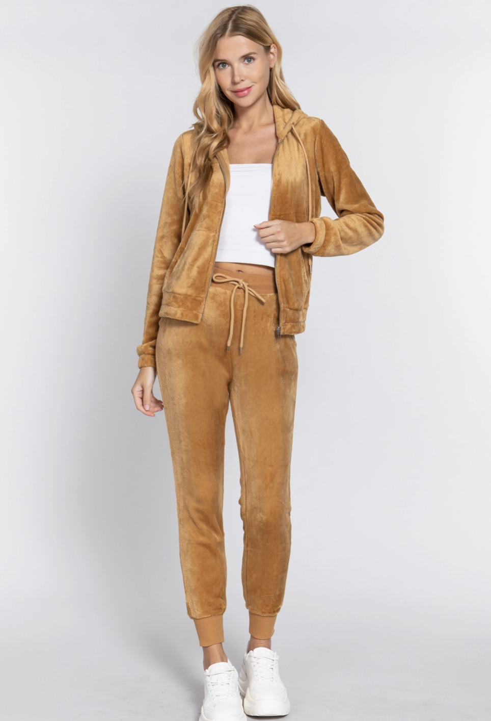 Ensemble de survêtement en velours allie confort et style décontracté.