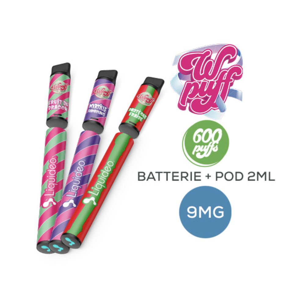 Le Starter Kit WPuff 600 Original Pod est composé d'une batterie rechargeable de 550mAh d'autonomie (à la couleur de la saveur associée) et d'un Pod Wpuff 600 Original Pod (pré-rempli de 2mL de liquide en 9mg de sel de nicotine).