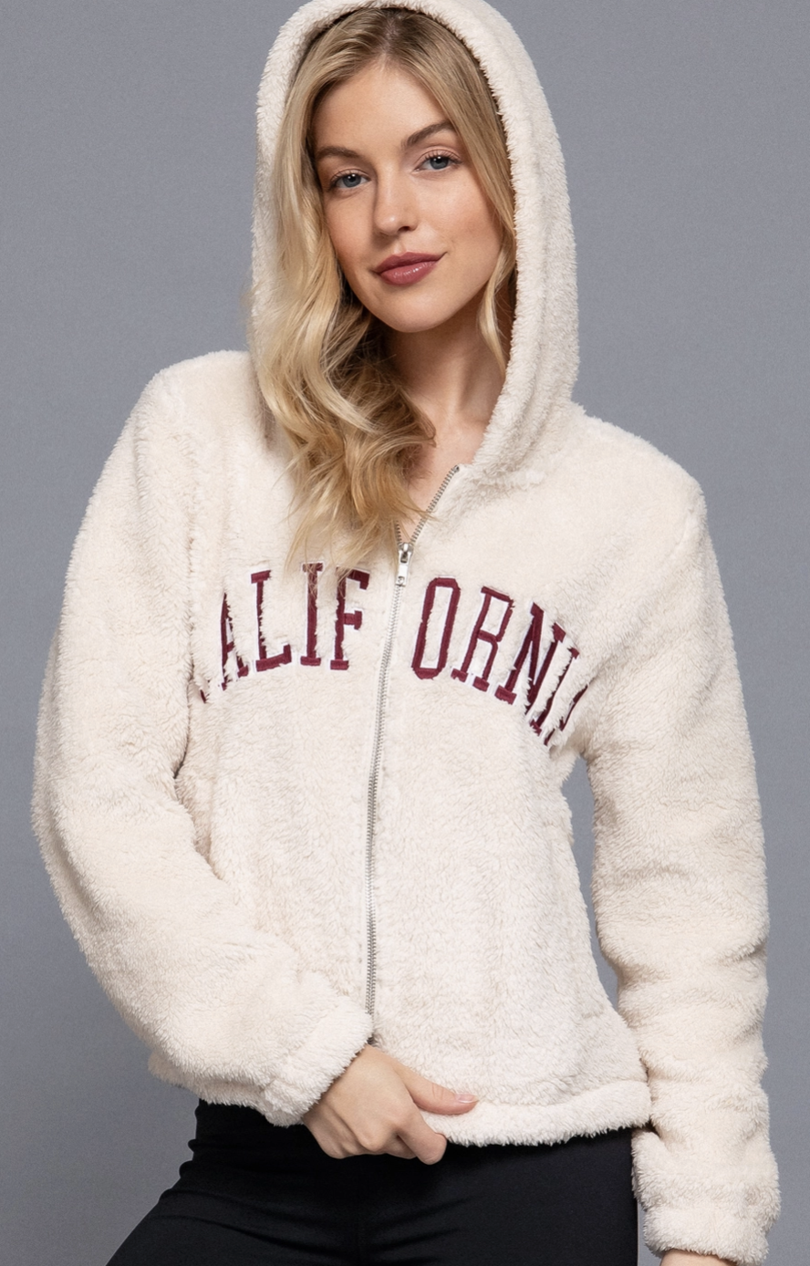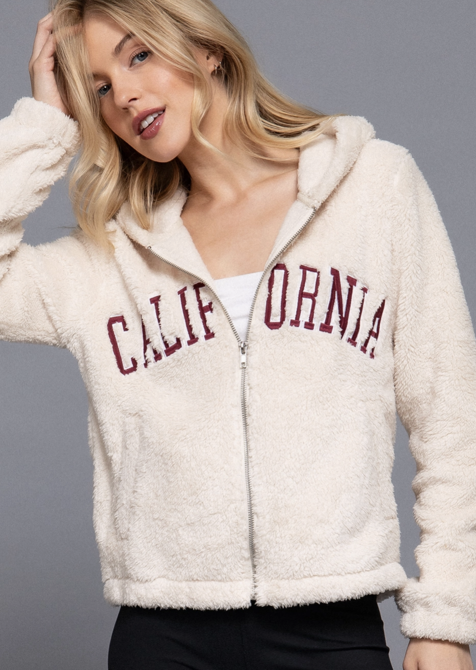 VESTE À CAPUCHE FOURRURE CALIFORNIENNE BRODÉE – L'Esprit West Coast Rencontre le Luxe Douillet.