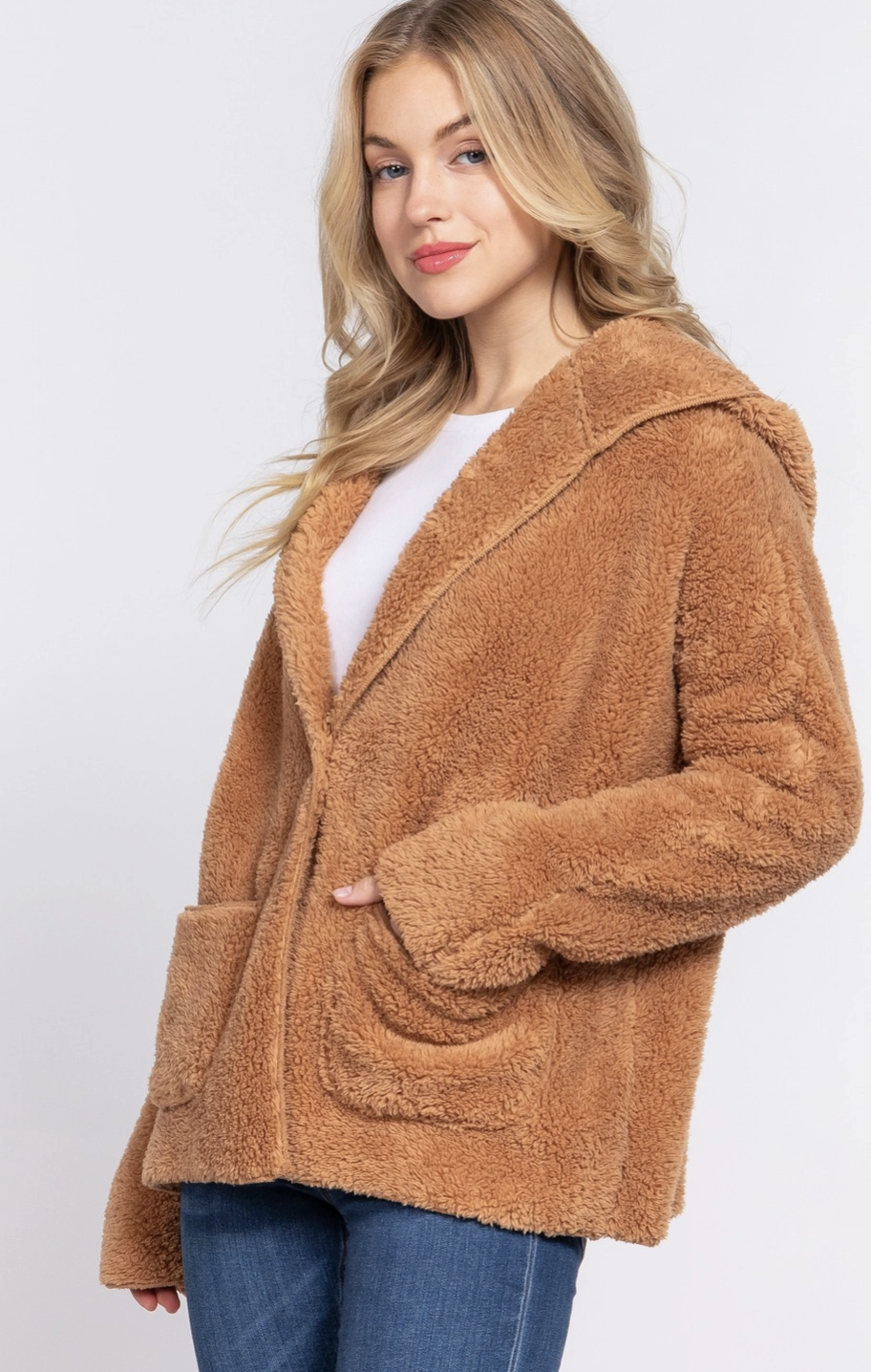 VESTE SHERPA À CAPUCHE À MANCHES LONGUES DOLMAN