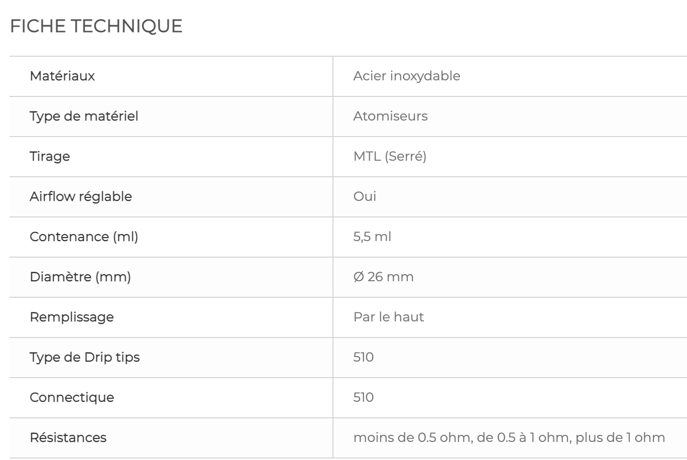 L'atomiseur Zenith II peut contenir jusqu'à 5.5ml de liquide remplissable par le haut en tournant le top cap.Le Zenith II dispose d'un système d'Airflow précis réglable grâce à une bague rotative situé sur la base de l'ato.Le pyrex de l'atomiseur est remplaçable. |