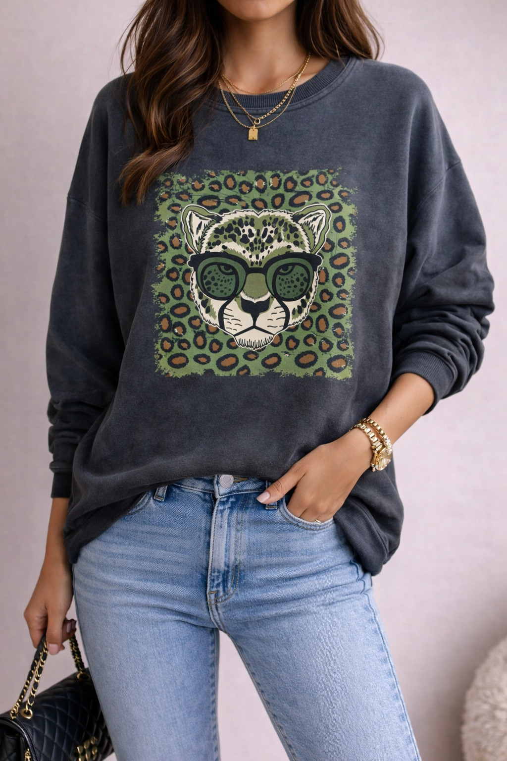 Sweat vintage imprimé léopard
